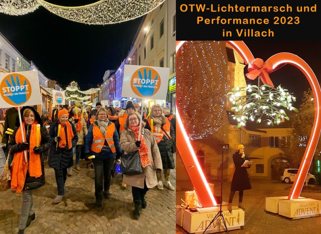 Über 60 Gäste konnten wir am 29.11.2023 beim traditionellen OTW-Lichtermarsch durch die Innenstadt von Villach begrüßen. Viele Vereine, Frauenhaus, Politik und Kirche folgten der Einladung unseres Vereines. Präsidentin Susanne Meusel, CS Johanna Sadounig und vor allem die Künstlerin Greta Lindermuth brachten mit ihren Vorträgen, Gedichten, Fragen und ihrer Performance eine unter die Haut gehende Stimmung in den nächtlichen Lichtermarsch. Eine Aktion, die den Villacher Soroptimistinnen viel Anerkennung und Wertschätzung einbrachte.